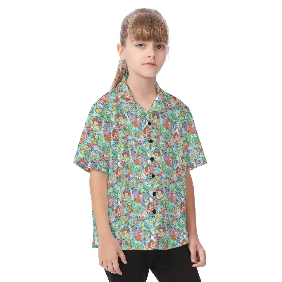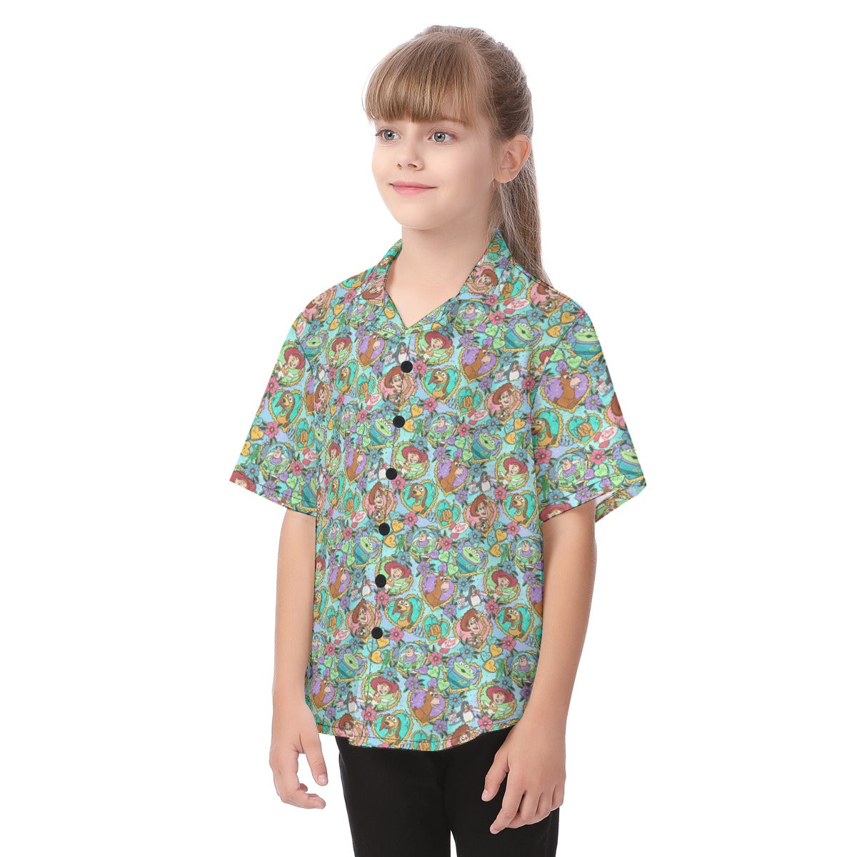 Tattoo Hearts Space Cowboys & Friends - Kid's Hawaiian Button Up Shirt
