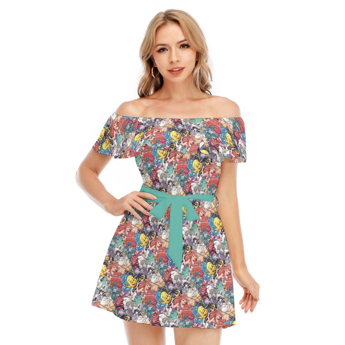 Undersea Crew Sketch - Women's Off-shoulder Ruffle Dress
