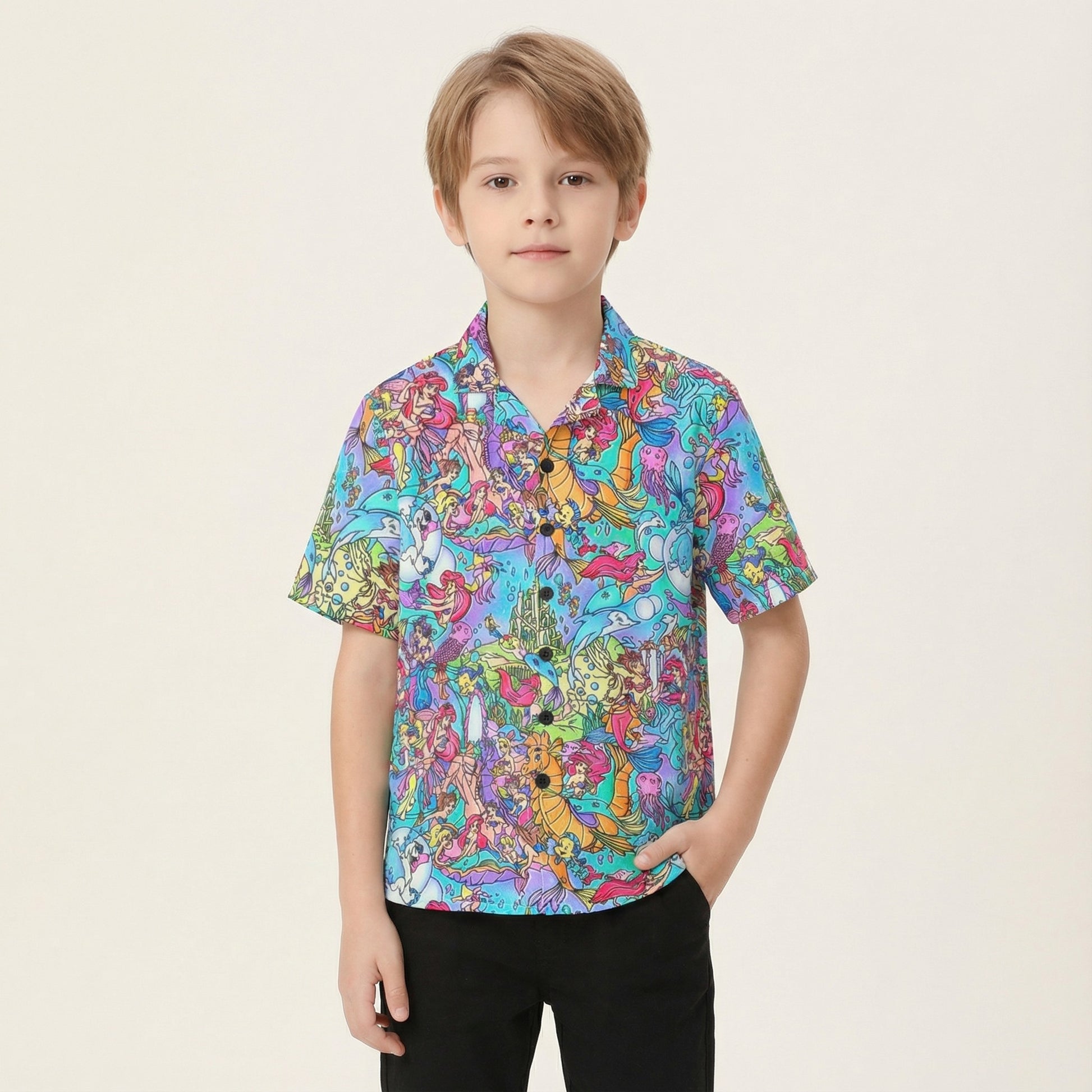 Under the Sea Storybook Scenes - Kid's Hawaiian Button Up Shirt