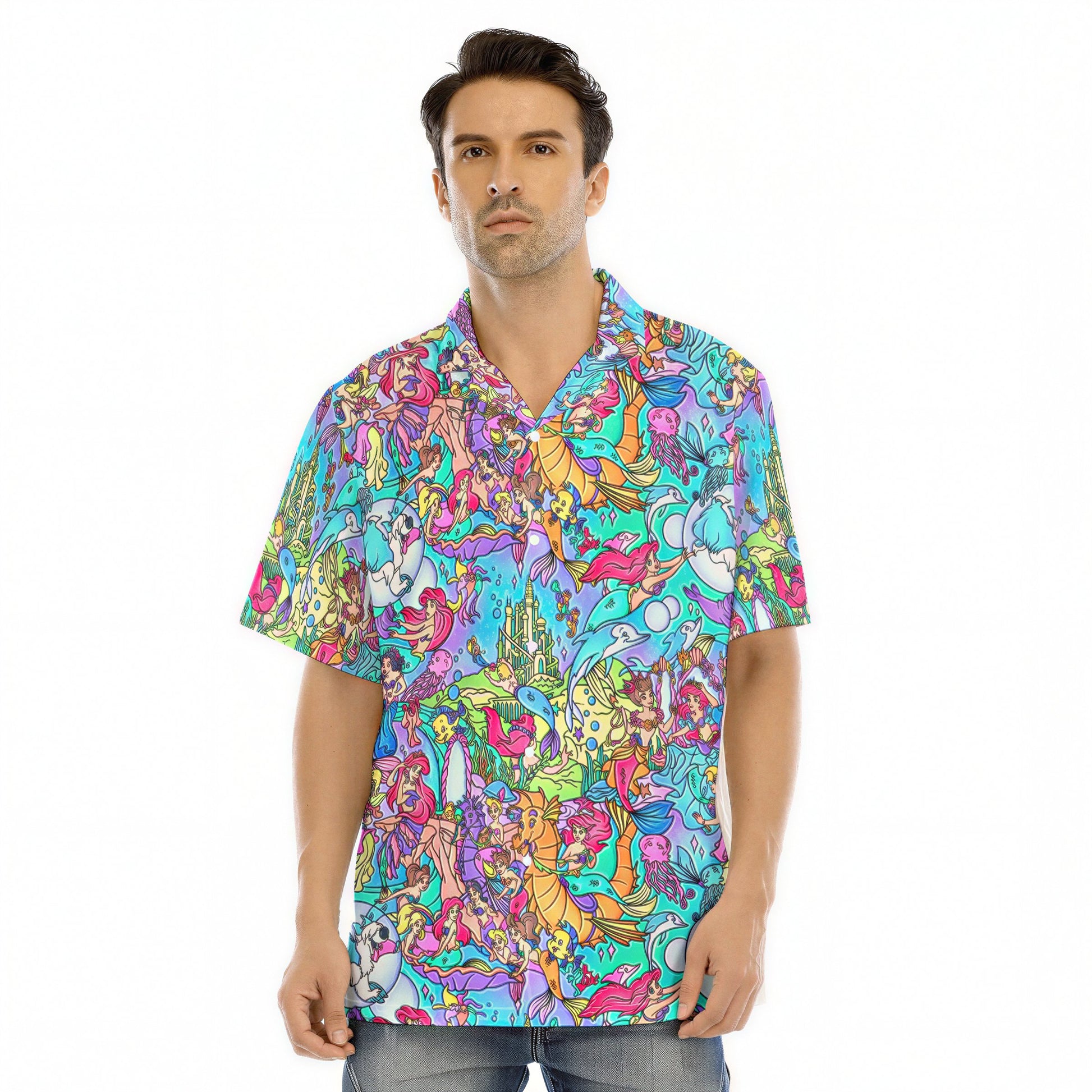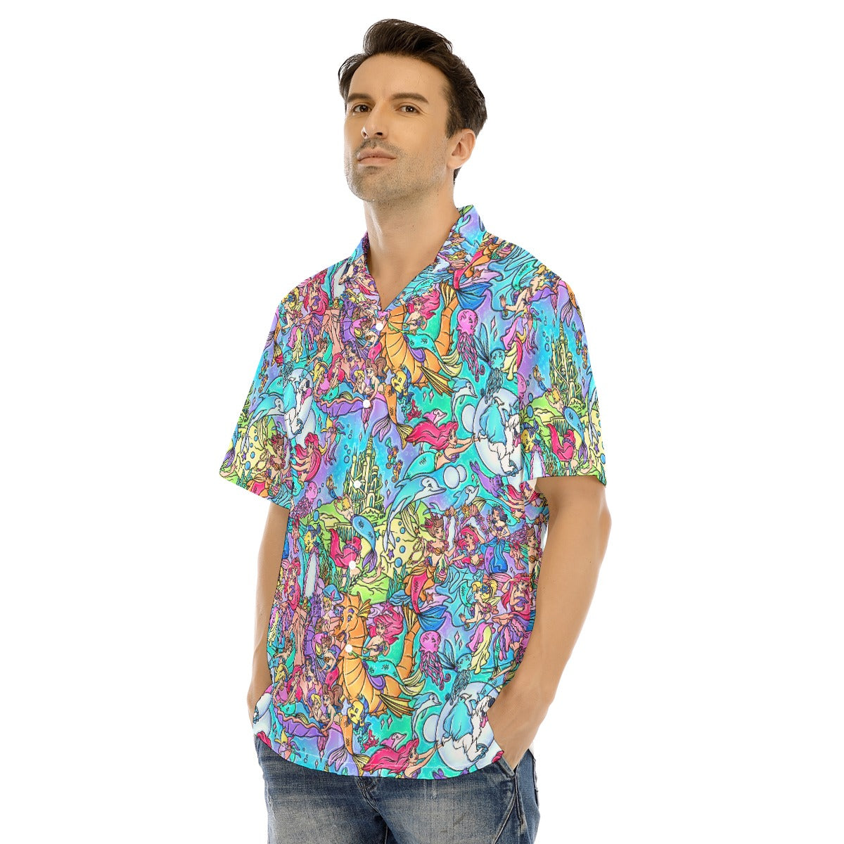 Under the Sea Storybook Scenes - Men's Hawaiian Button Up Shirt