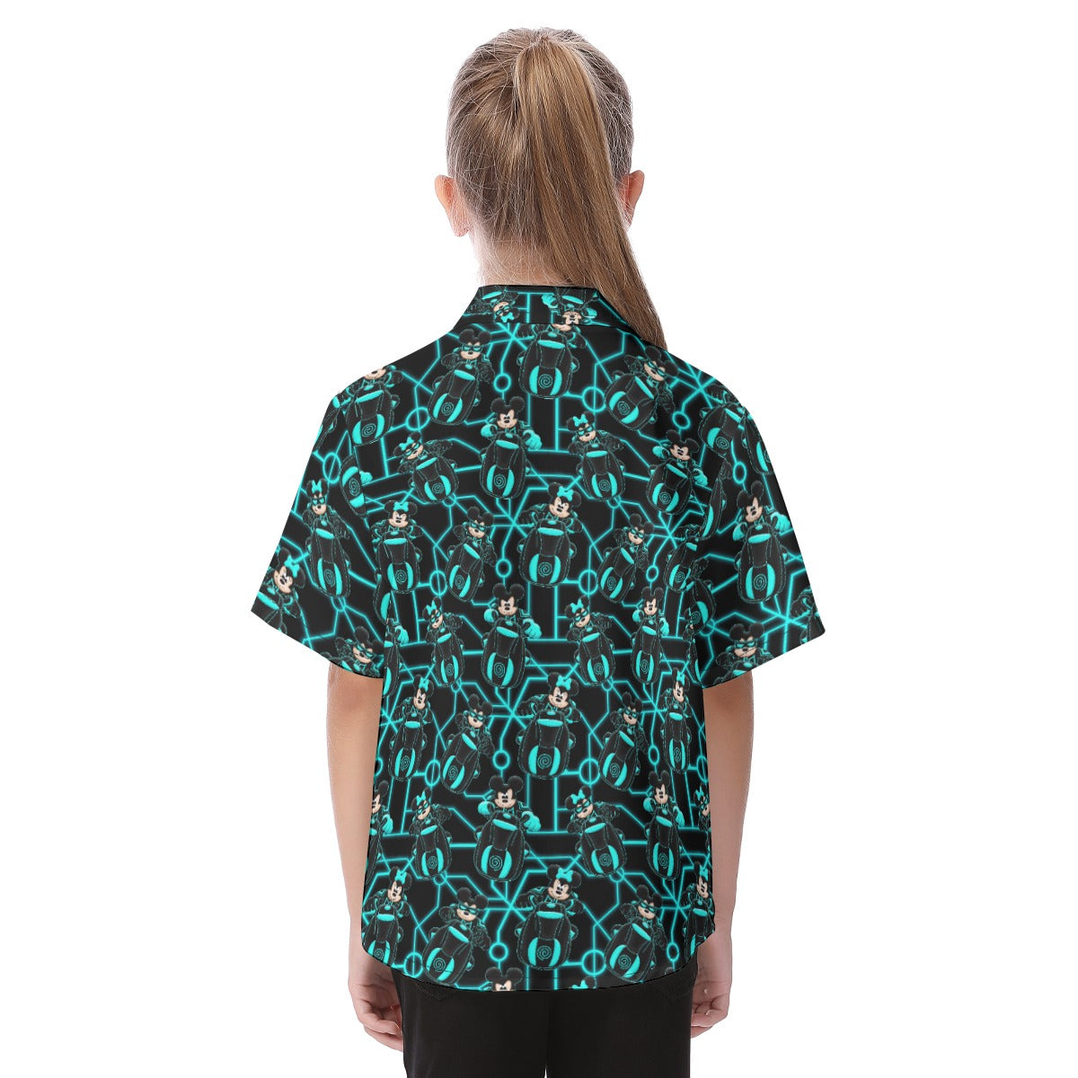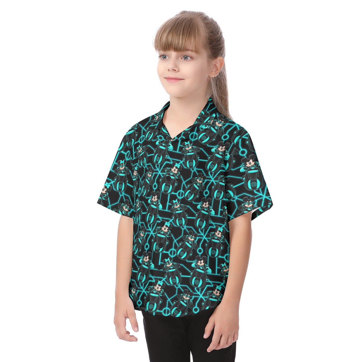 Electric Neon Grid Adventure - Kid's Hawaiian Button Up Shirt
