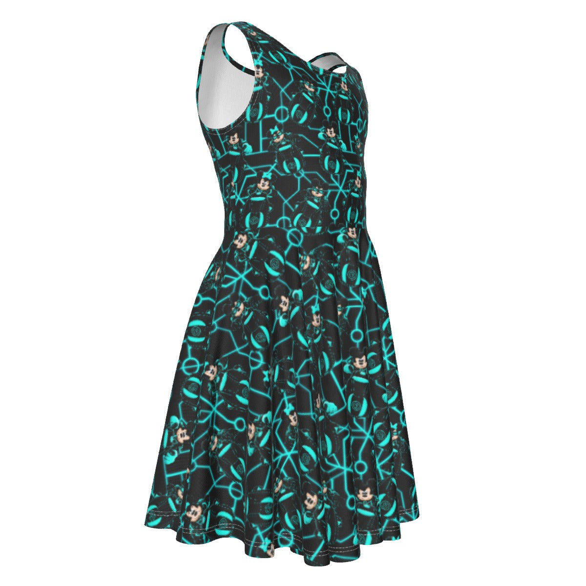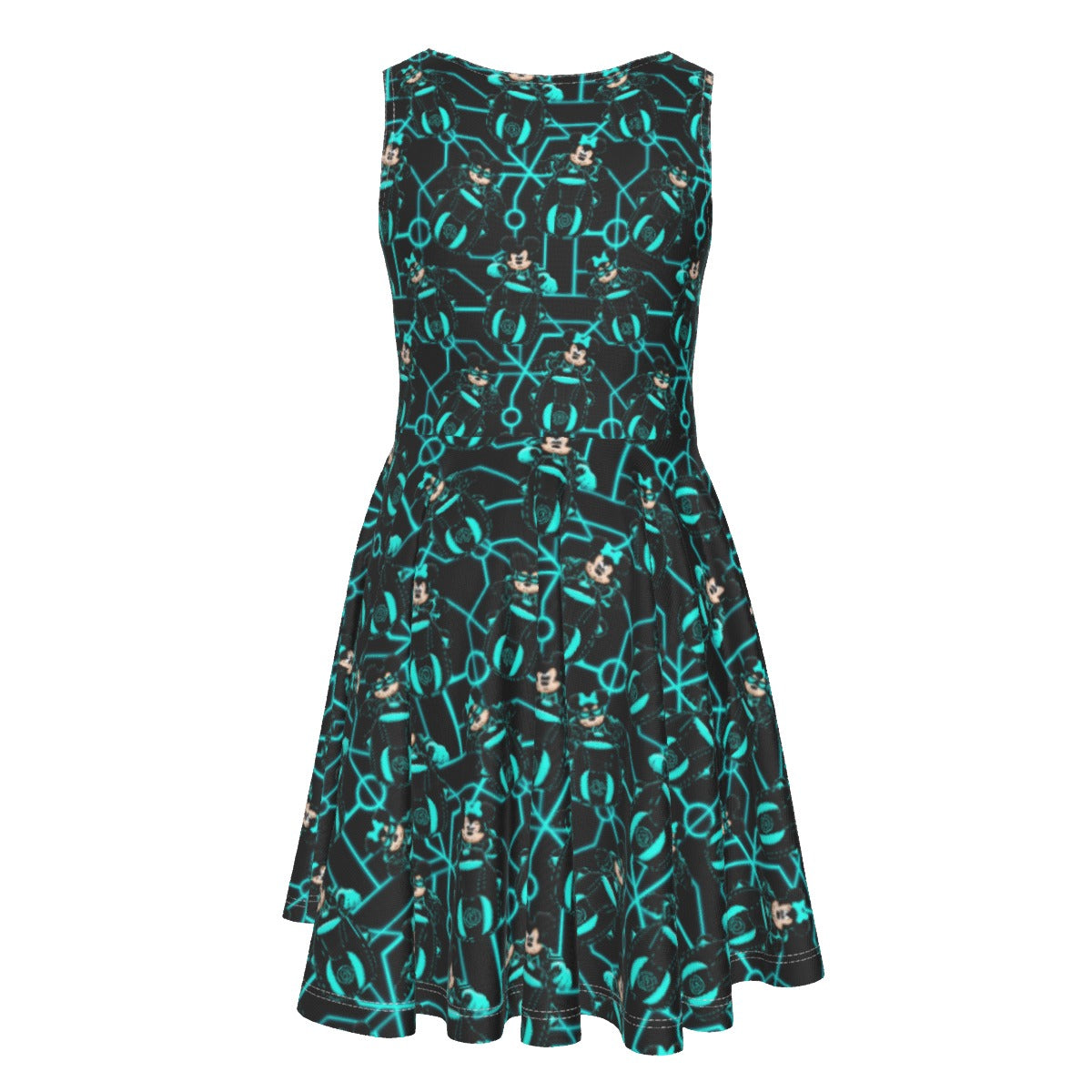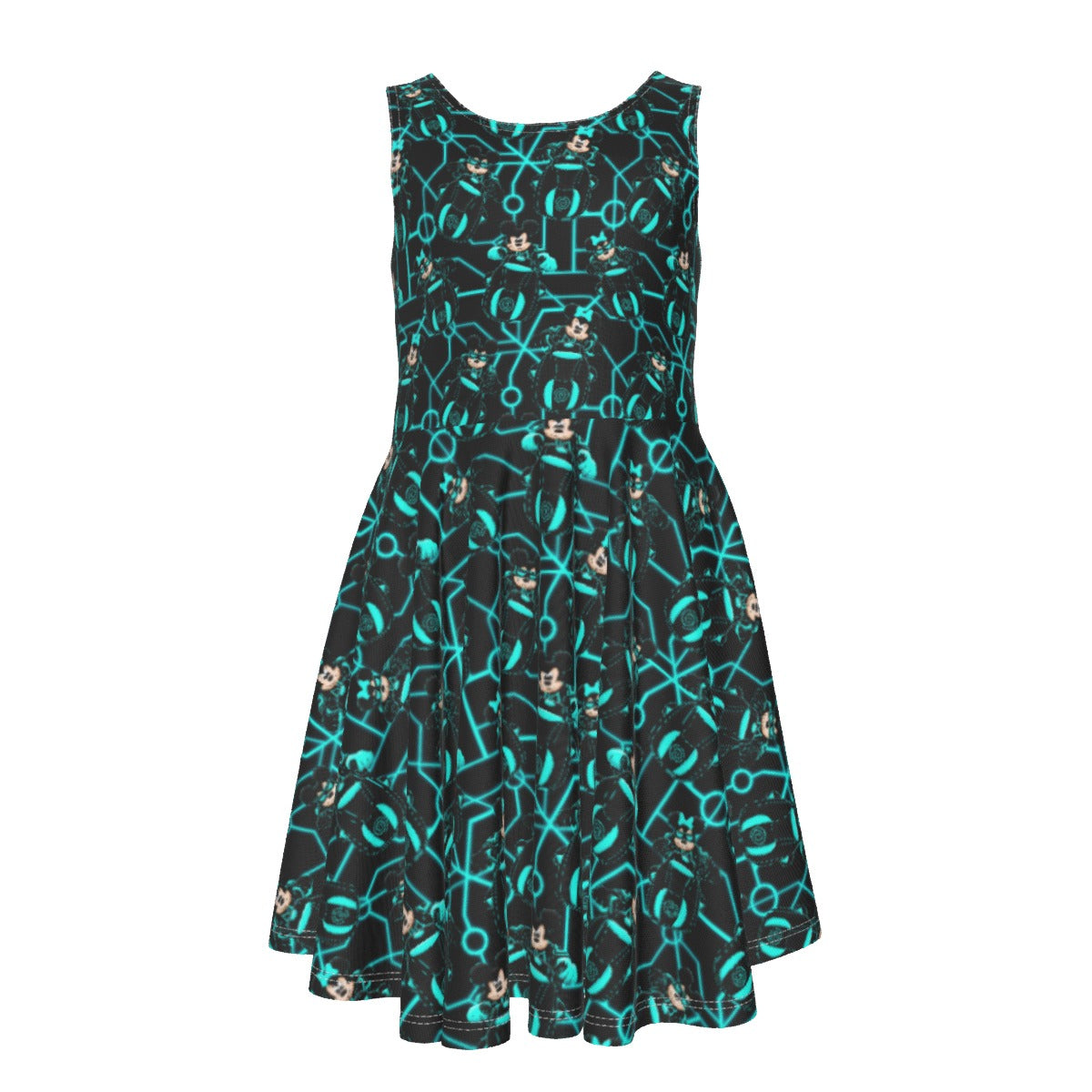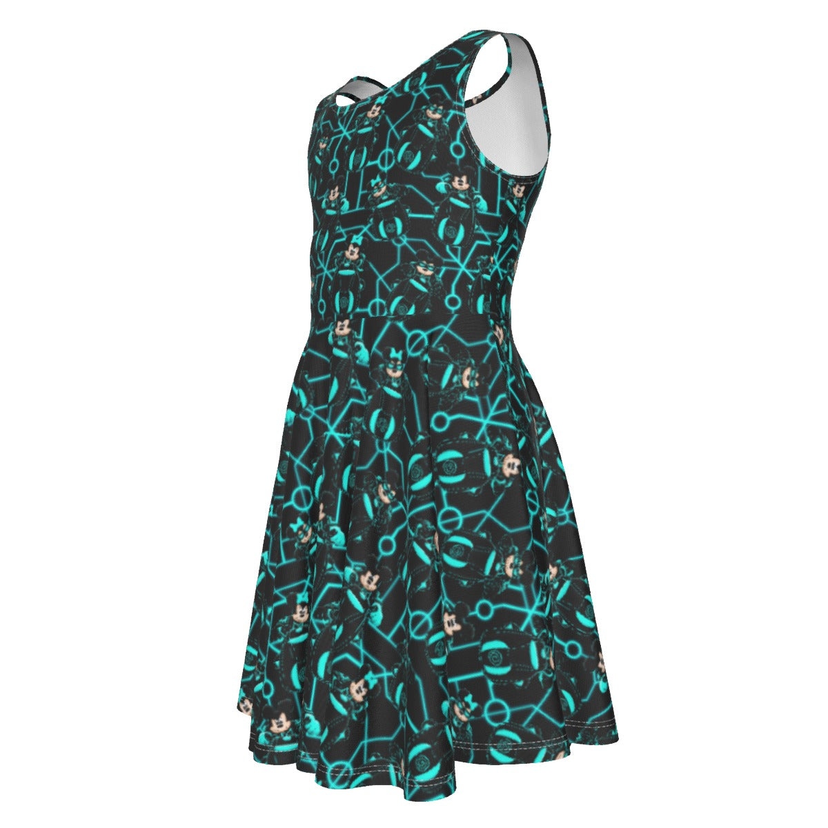 Electric Neon Grid Adventure - Kid's Sleeveless Skater Dress