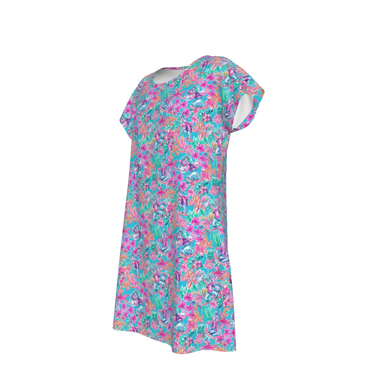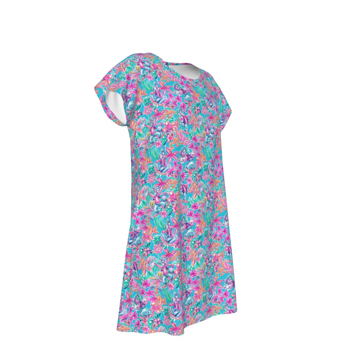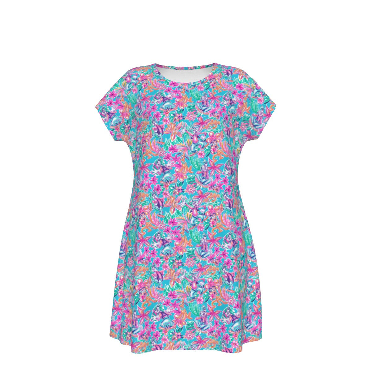 Tropical Bloom Fiesta - Playful Duo - Women's T-Shirt Dress