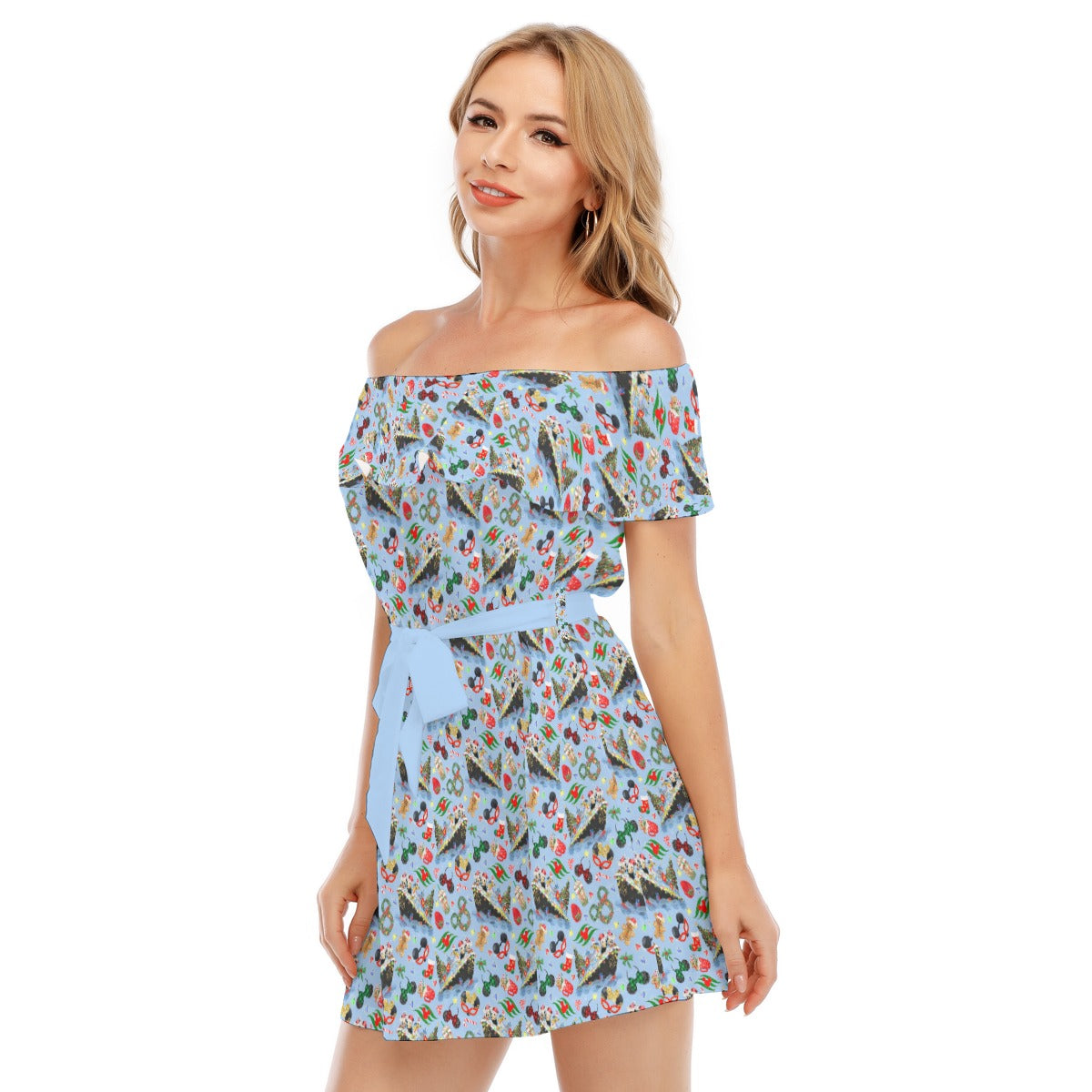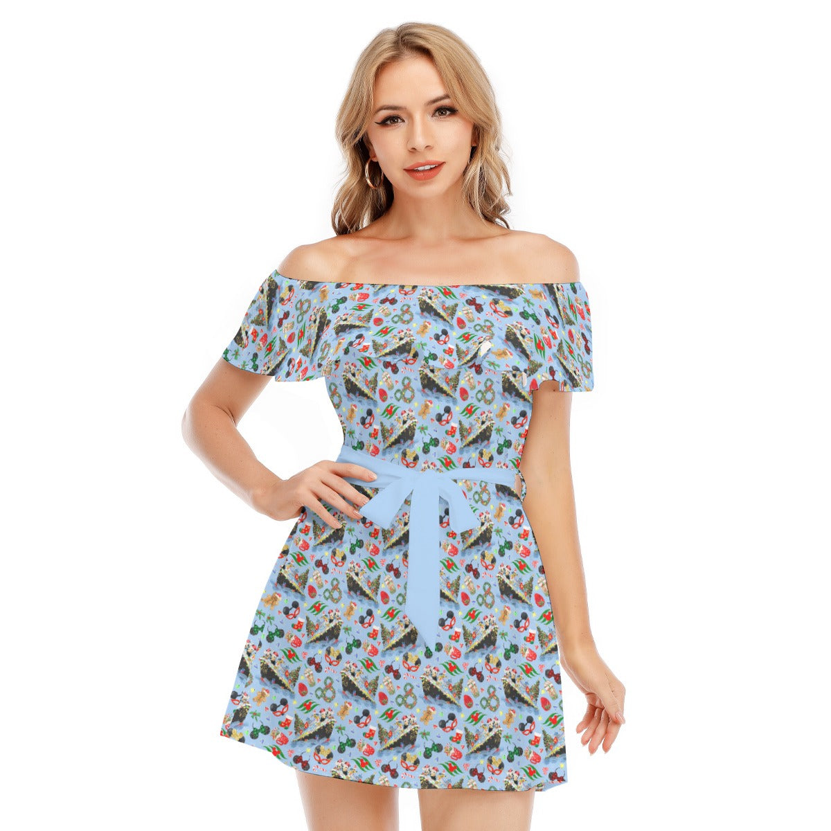 Very Merrytime Christmas Cruise - Women's Off-shoulder Ruffle Dress