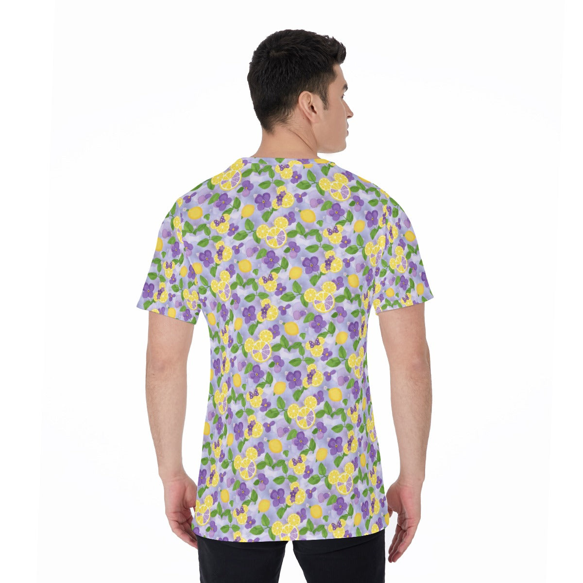 Inspired by a beloved springtime refreshment, this cheerful design pairs juicy lemons with delicate violet blooms in a fresh, vibrant celebration. Hidden citrus slices add a playful nod to classic mouse ears, while soft watercolor pastels create a dreamy garden-kissed vibe. A zesty, floral print capturing the magic of spring in full bloom.