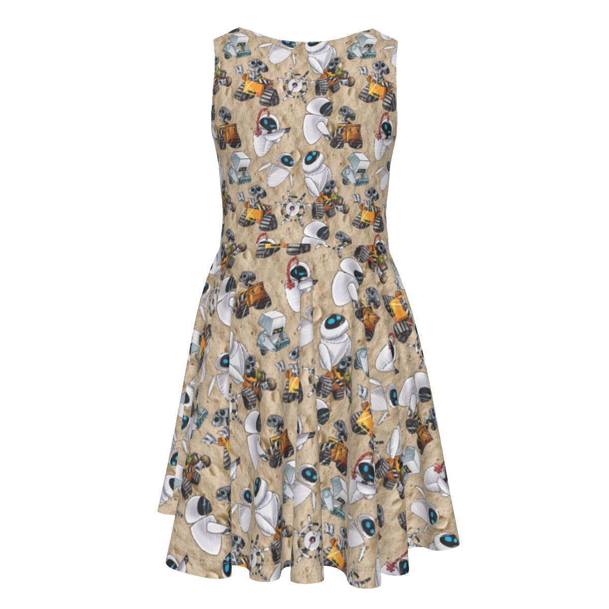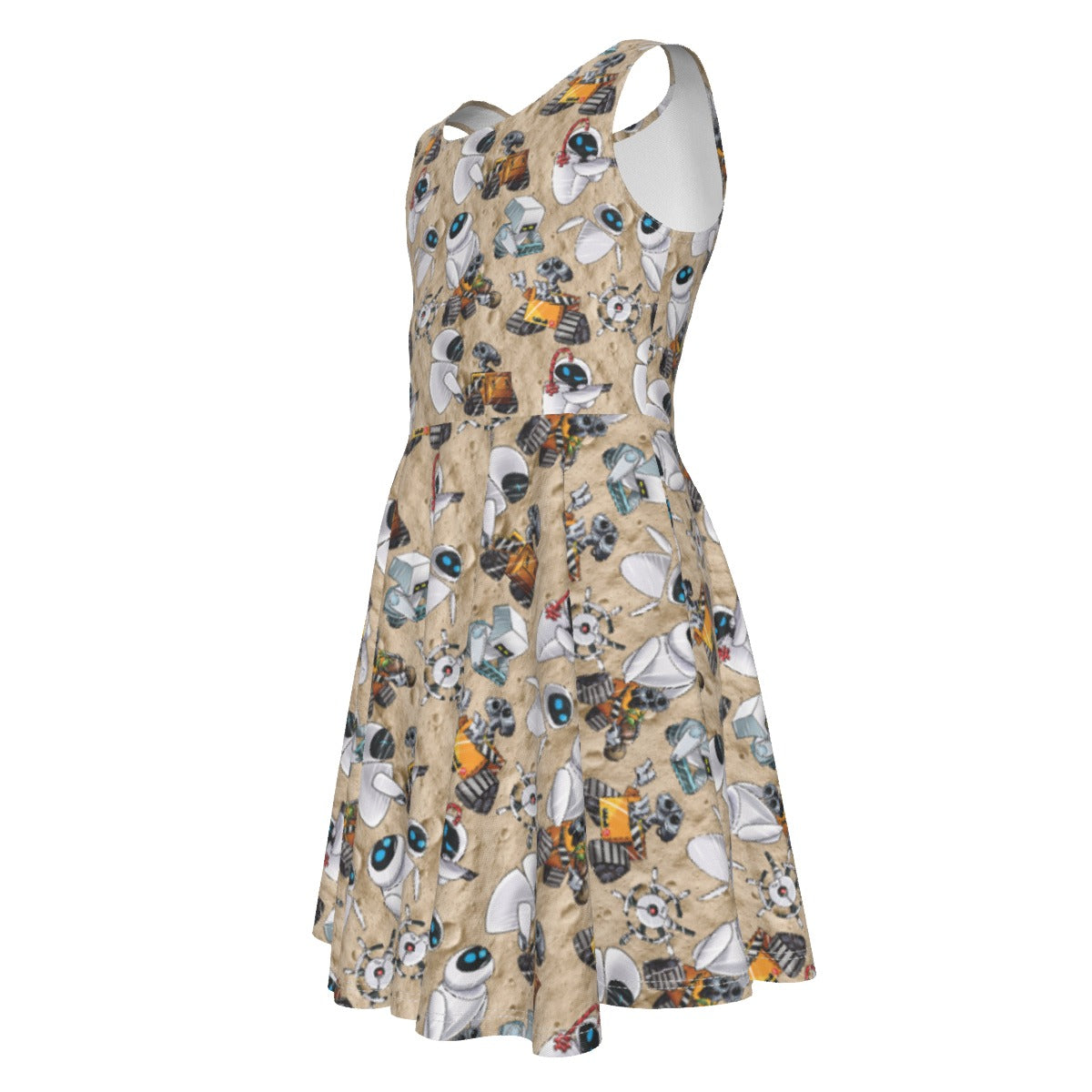 Robot Romance Sketchedched - Kid's Sleeveless Skater Dress