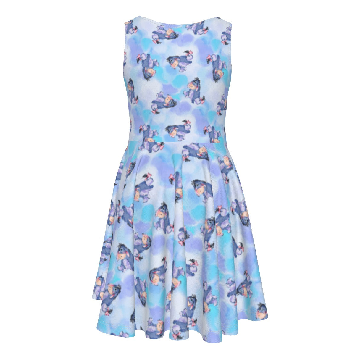 Watercolor Gentle Donkey - Kid's Sleeveless Skater Dress