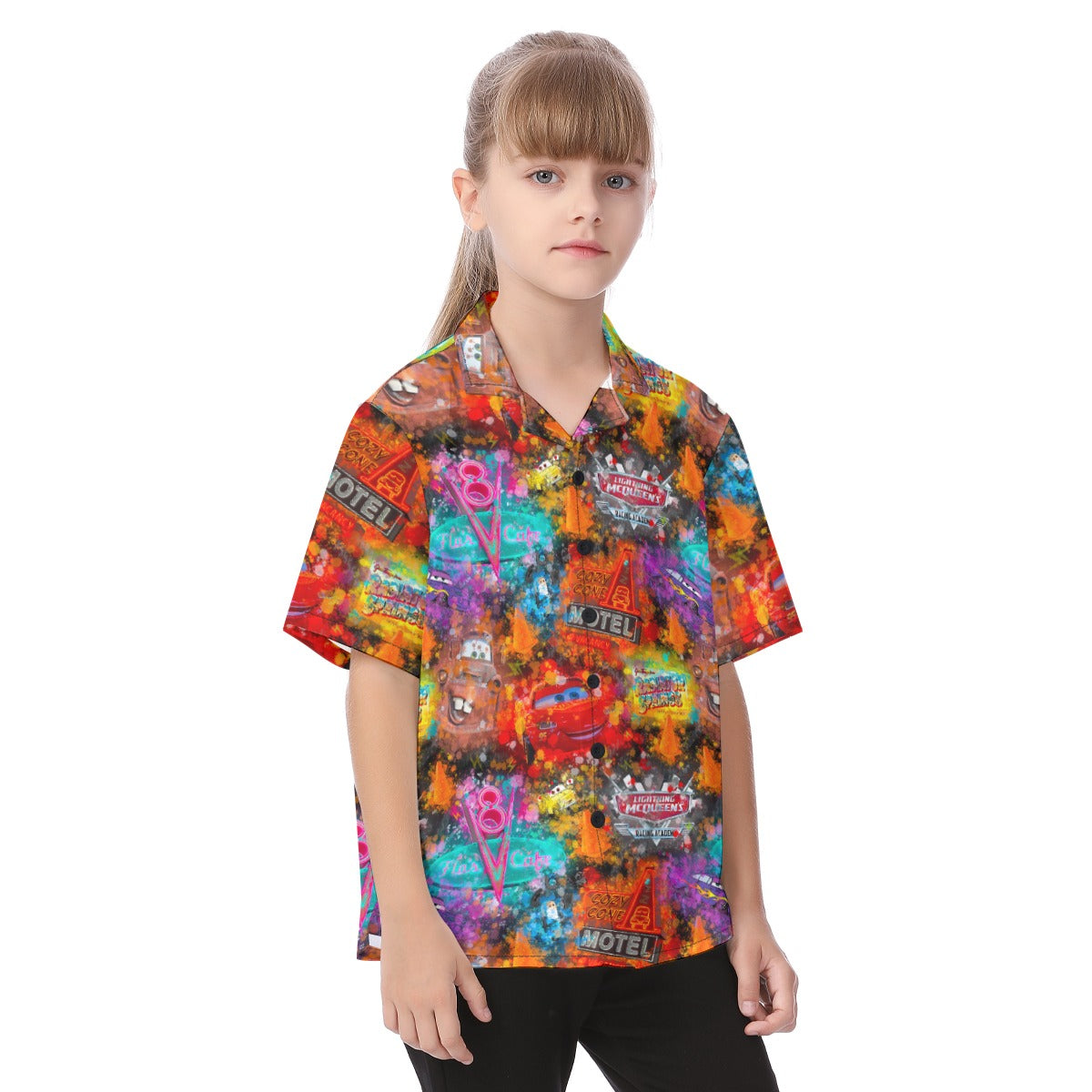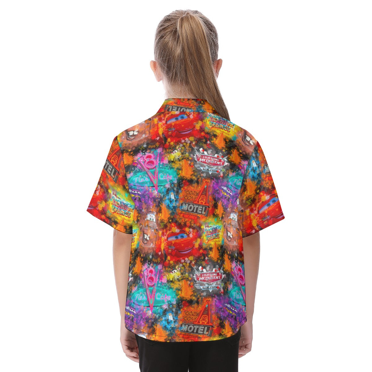 Watercolor Racing Adventure - Kid's Hawaiian Button Up Shirt