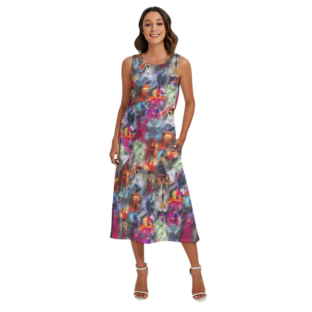 Watercolor Wicked Villains - Women’s Diagonal Pocket Midi Dress