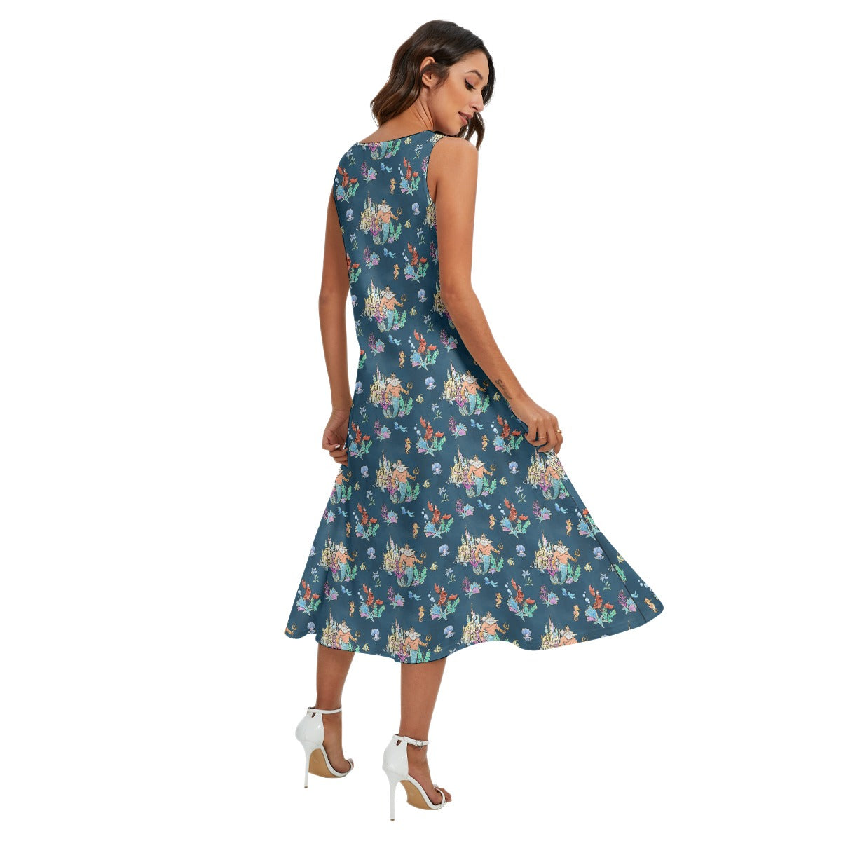 Rule the ocean in style with this whimsical print featuring a mighty sea king, a worried crab friend, and sparkling coral castles on a dreamy navy sea — it’s undersea royalty with a playful twist.