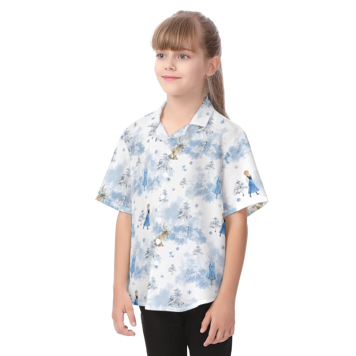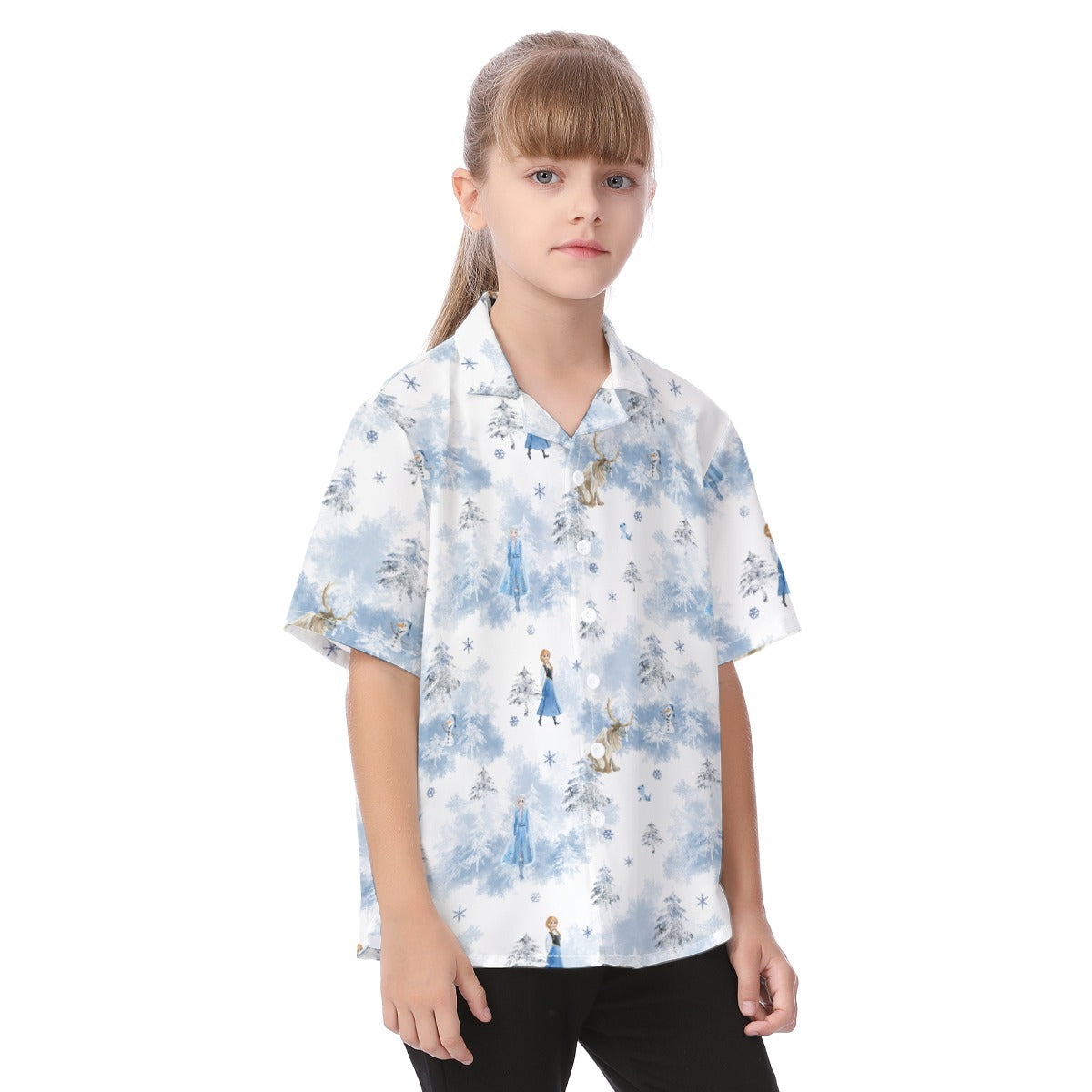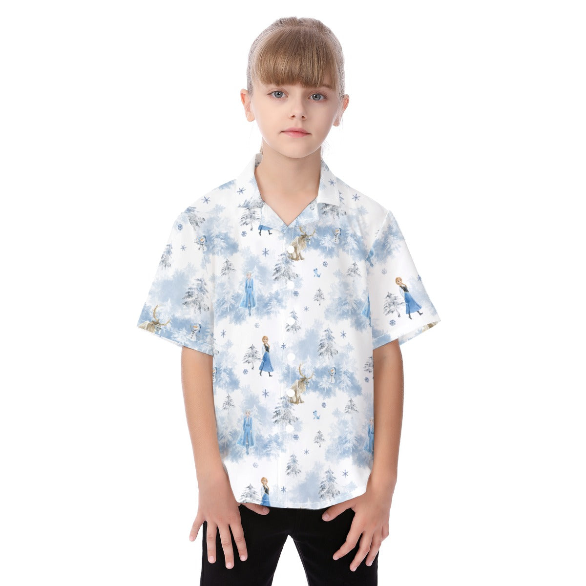 Enchanted Winter Landscape - Kid's Hawaiian Button Up Shirt