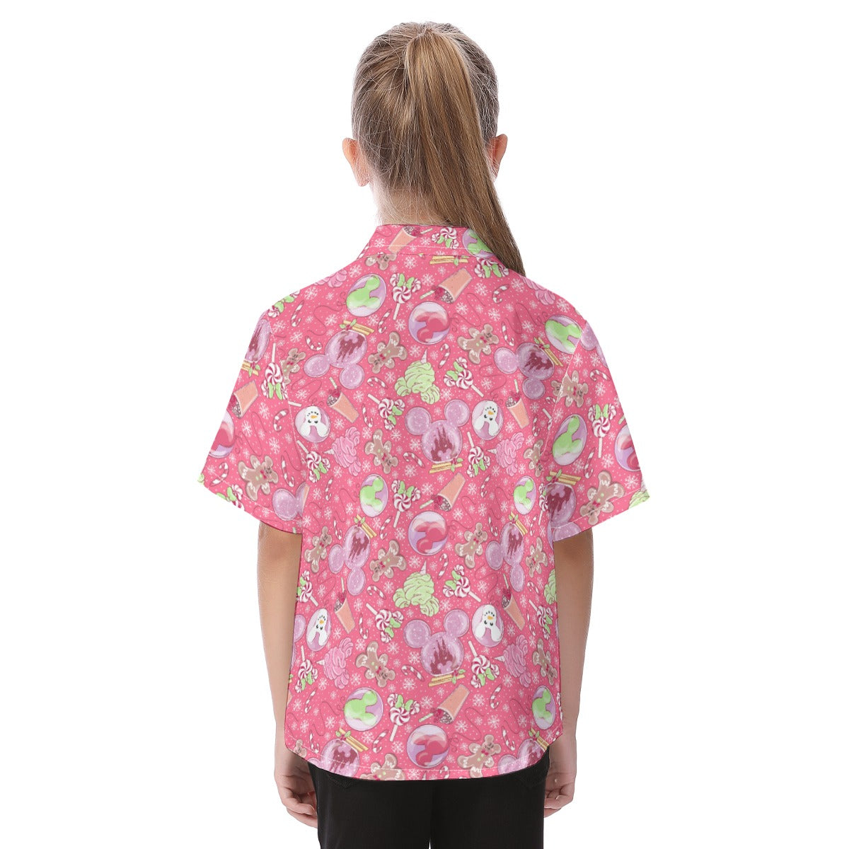 Winter Mouse Snacks & Balloons - Kid's Hawaiian Button Up Shirt