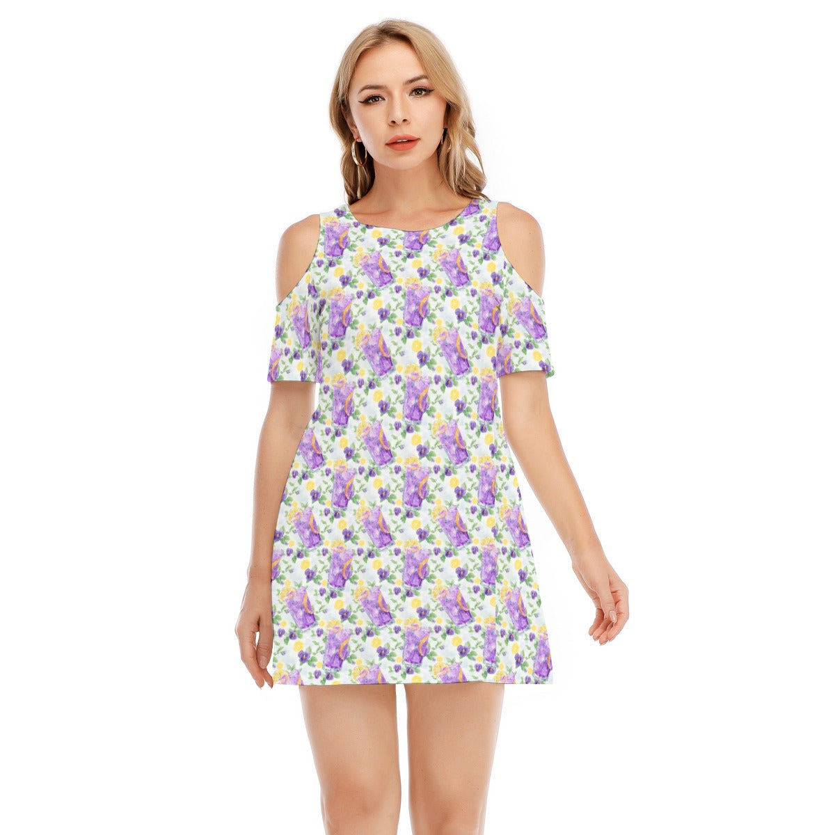 Zest Of The Fest Violet Lemonade - Women's Cold Shoulder Cotton Dress